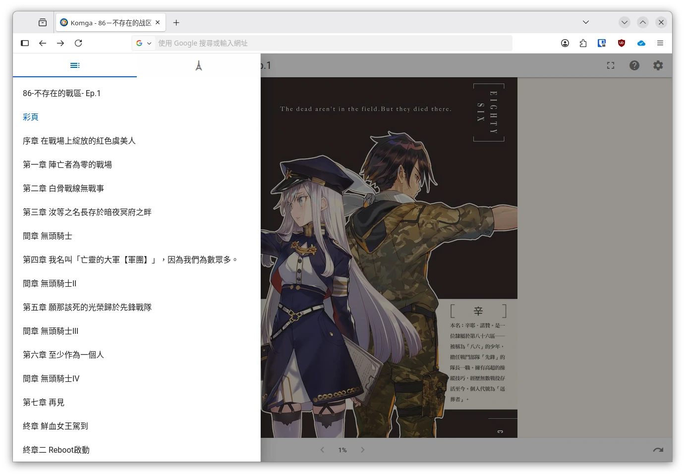 Komga可以在其他裝置存取,根據螢幕自動變化介面大小,例如這是手機APP閱讀界面: