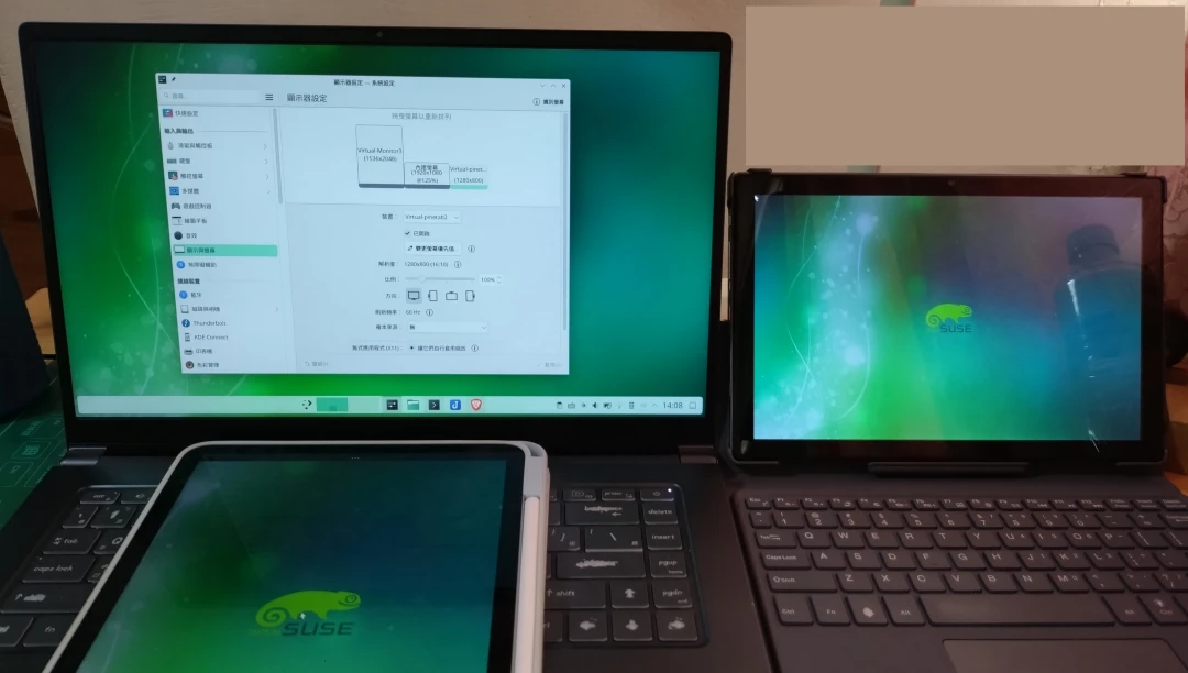 兩台電腦皆使用KDE Plasma桌面的場合,可以透過KDE Connect的快捷鍵建立虛擬顯示器,不用手動打krfb-virtualmonitor指令。