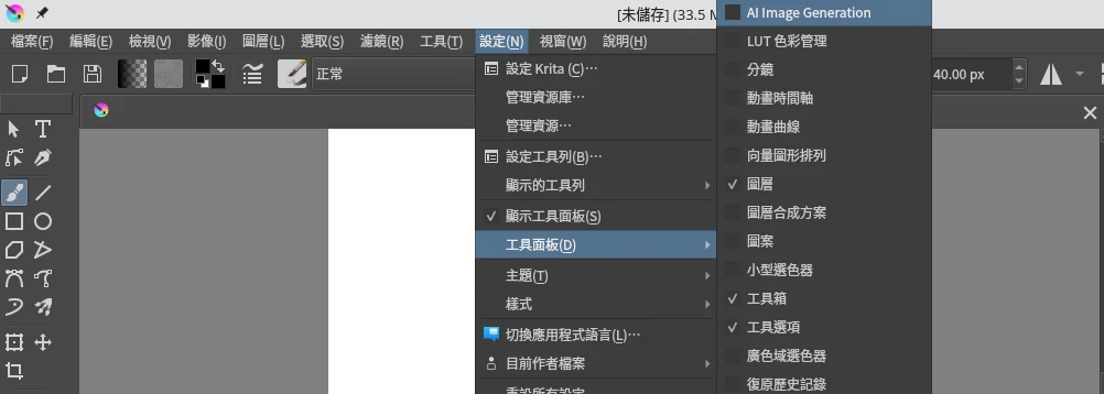 點選設定 → 工具面板 → 勾選AI Image Generation