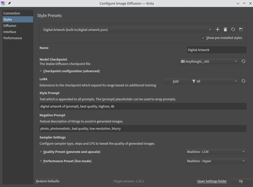 Krita AI (krita-ai-diffusion) 是一款將AI生圖功能整合進Krita的第三方外掛,背後依賴ComfyUI + Stable Diffuision模型生圖。