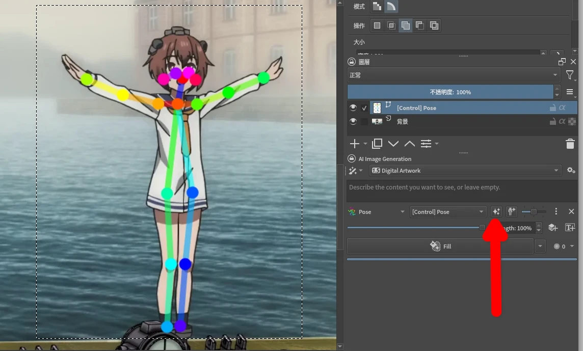 點選Generate Control Layer from Current Image,讓AI參考圖片人物動作生成骨架