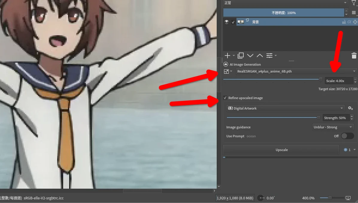 Krita AI預設下載的4x_NMKD-Superscale模型只適合放大真實圖片。如果要放大插畫圖片,推薦另外下載Anime6B的模型,並放到ComfyUI的models/upscale_models目錄。