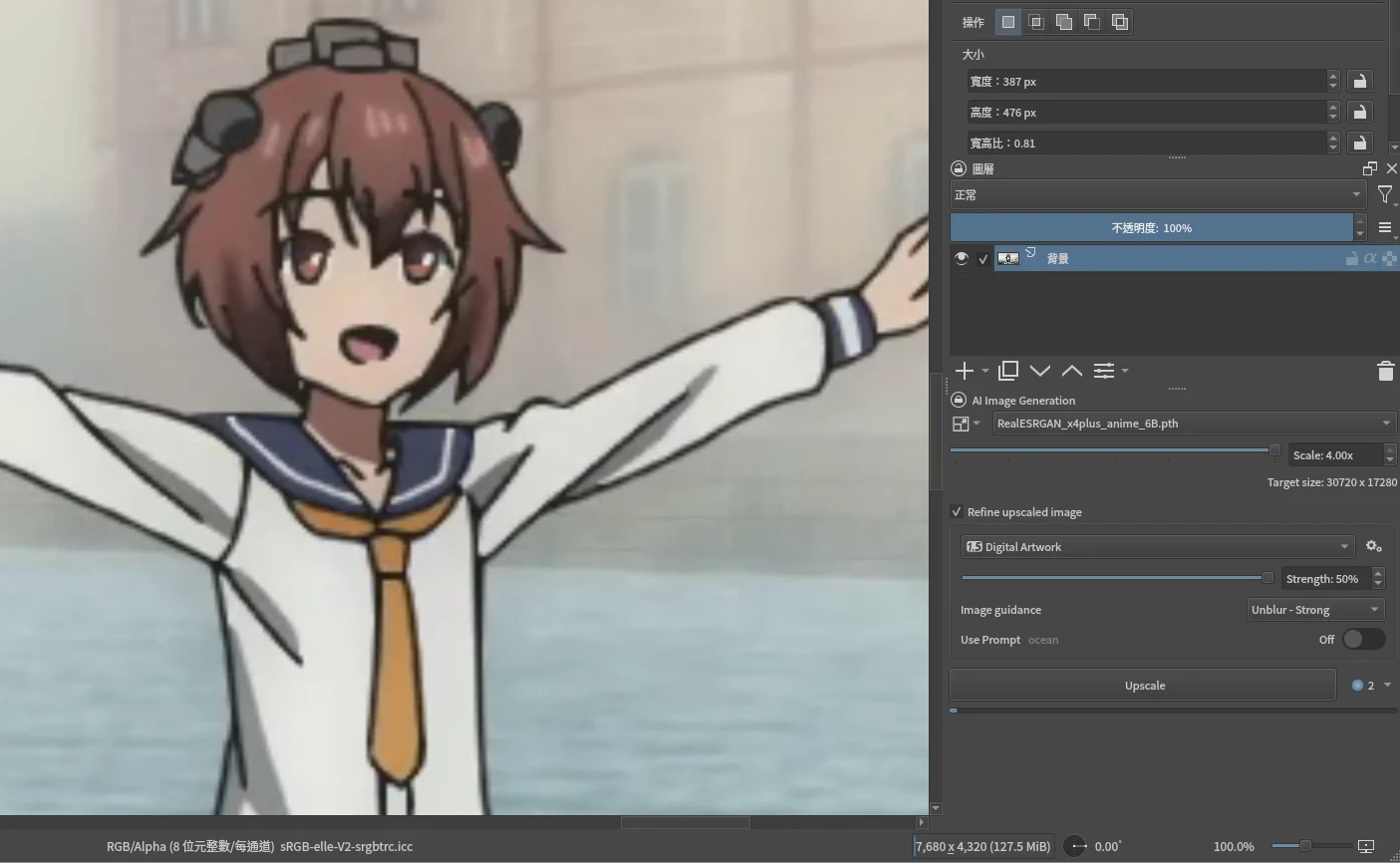 點選Upscale後,選取的圖層解析度就會整張放大。