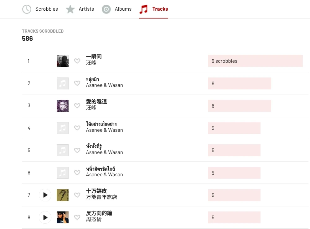 此處的資料約莫要scrobbling一天後才會整理出來。