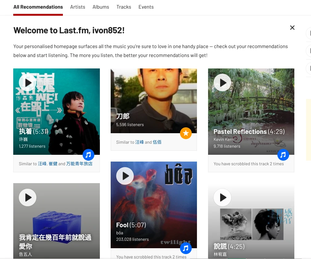 於是Ivon找到了last.fm這個網站,它是一個位於英國的社交網站,會將聽過的音樂歷史自動紀錄,供日後回顧。