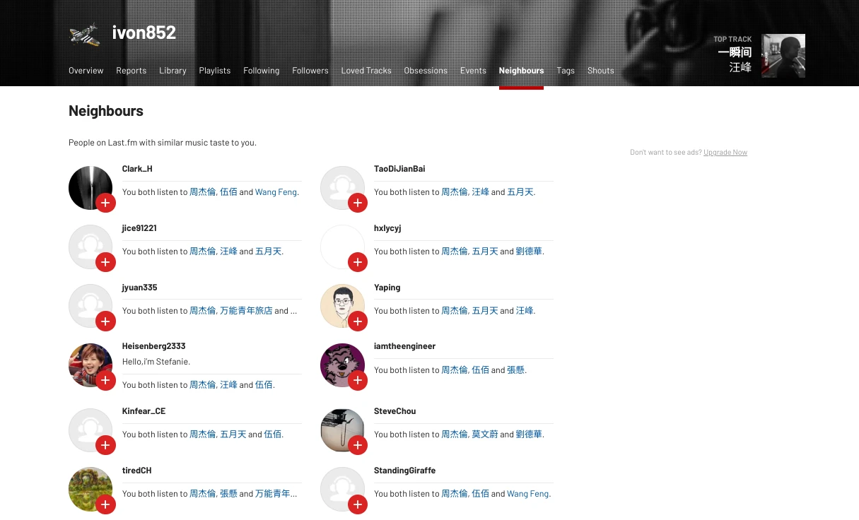 Neighbors頁面顯示喜好相近的last.fm用戶。