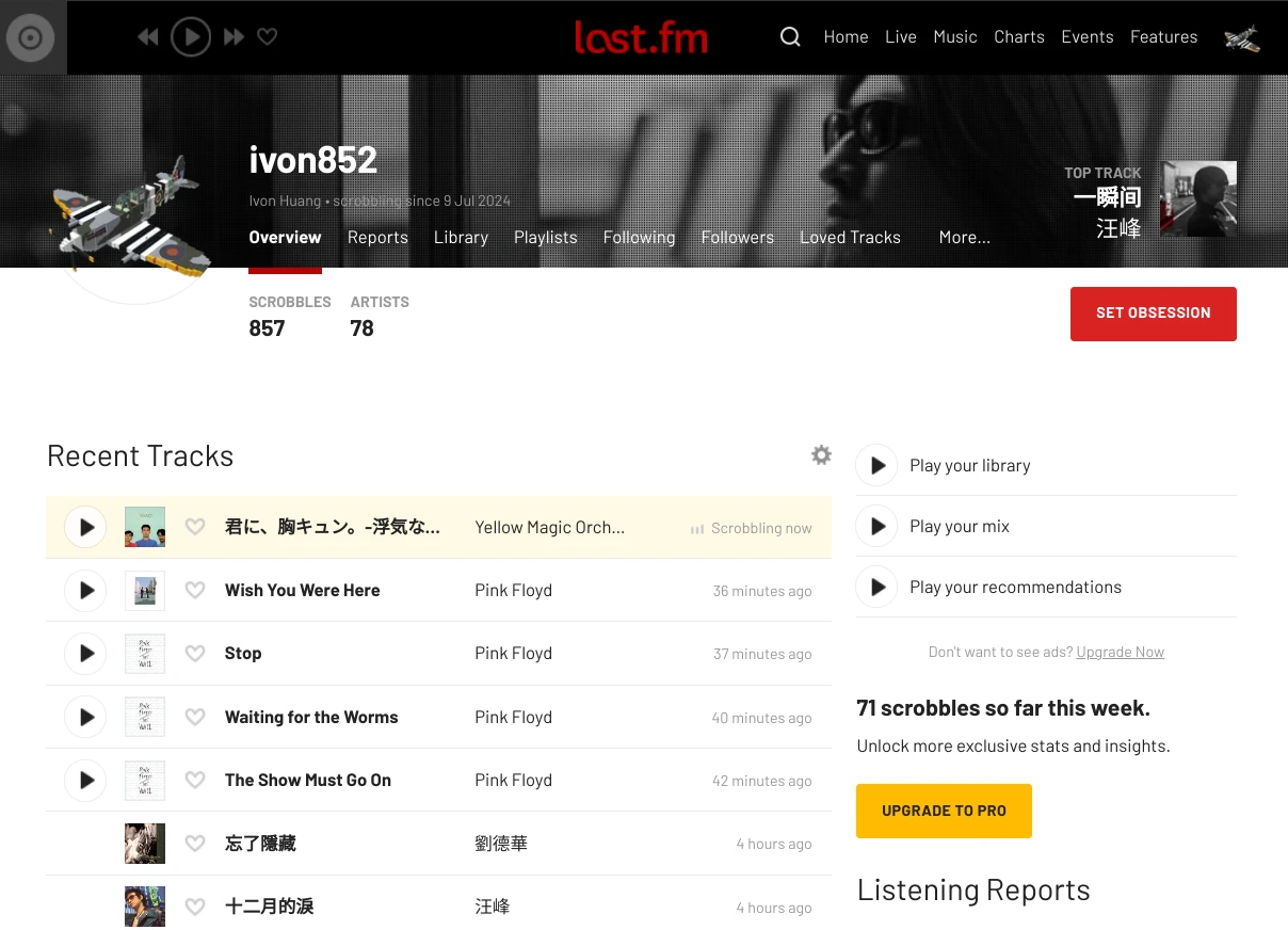 last.fm的Pro方案可幫你整理更詳盡的聆聽報告,我覺得是有點太貴了,所以沒買。