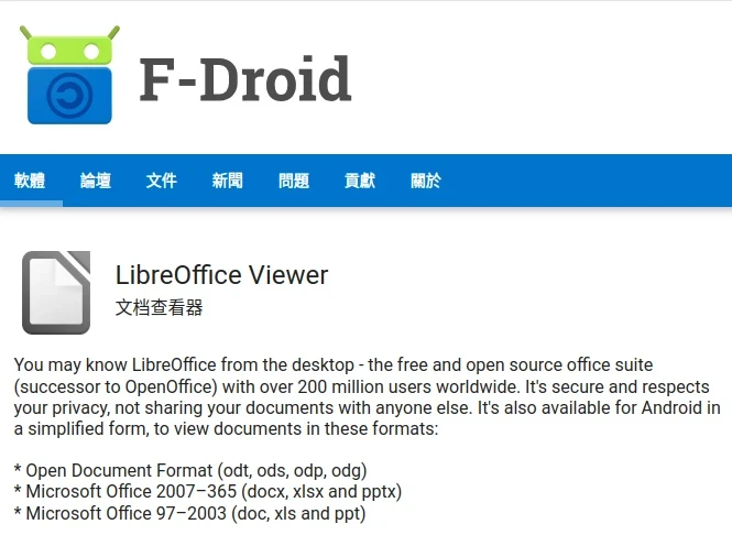 或者到官網取得APK。Collabora Office尚提供F-Droid第三方套件庫,方便使用者追蹤更新。