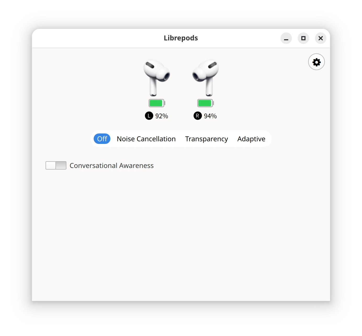 LibrePods這個專案,實現了查看電量、配對動畫、偵測耳朵、個人化音訊、切換降噪與通透模式、單耳降噪、適應性音訊、對話感知、頭部動作、用滑桿控制音量的功能。
