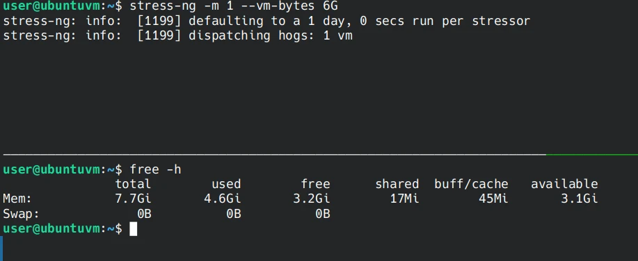 stress-ng -m 1 --vm-bytes 6G