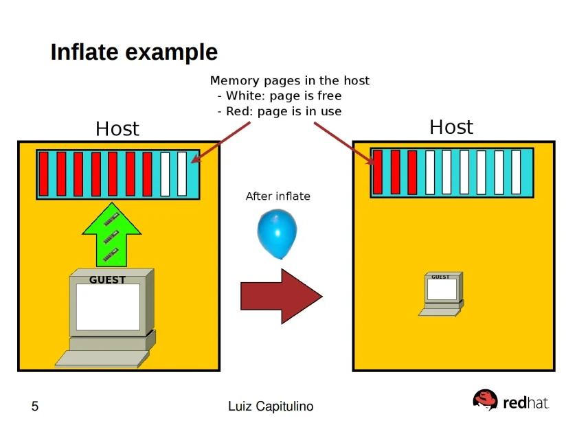 Libvirt會在虛擬機插入一個memballon裝置,當需要RAM的時候,氣球會放氣(deflate)將RAM給虛擬機