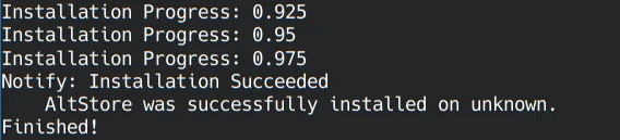 ./AltServer --udid "iOS裝置的UUID" --appleID "你的Apple ID" --password "Apple ID密碼" AltStore.ipa