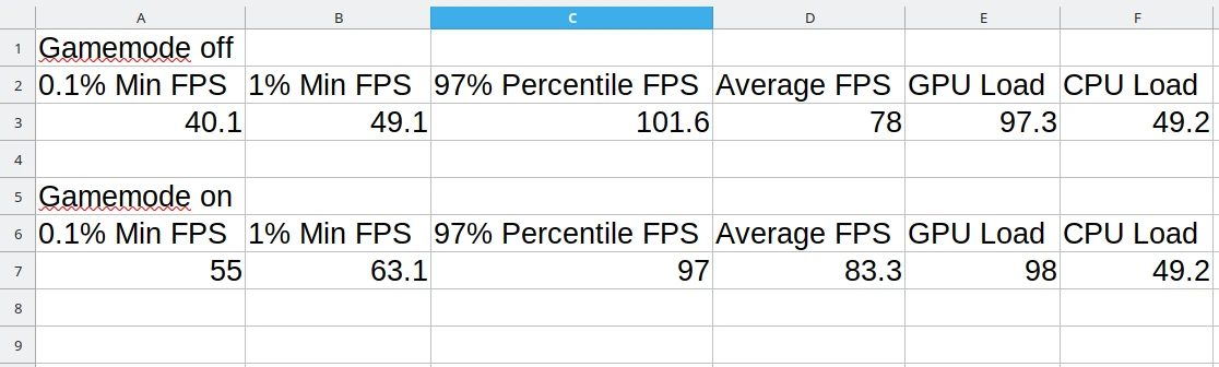 按照網友在How much of a difference does gamemode actually make? - Reddit經驗分享,Gamemode的用處可能在於消弭突發lag情況,但對整體FPS而言無多大幫助。
