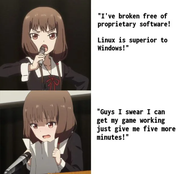 遊戲開發者要怎麼展現對Linux系統用戶的誠意呢?至少推出原生版的程式吧!很可惜這是幾乎不可能的事情,市面上半數遊戲開發商依然只會推出Windows版的遊戲。Windows遊戲可以透過Proton跑不代表就完美無缺的說。而且很多時候是玩家以第三者的角度認為Proton轉譯讓遊戲可以玩,但遊戲開發者根本就不在乎這方面問題,你能玩只是運氣好而已。