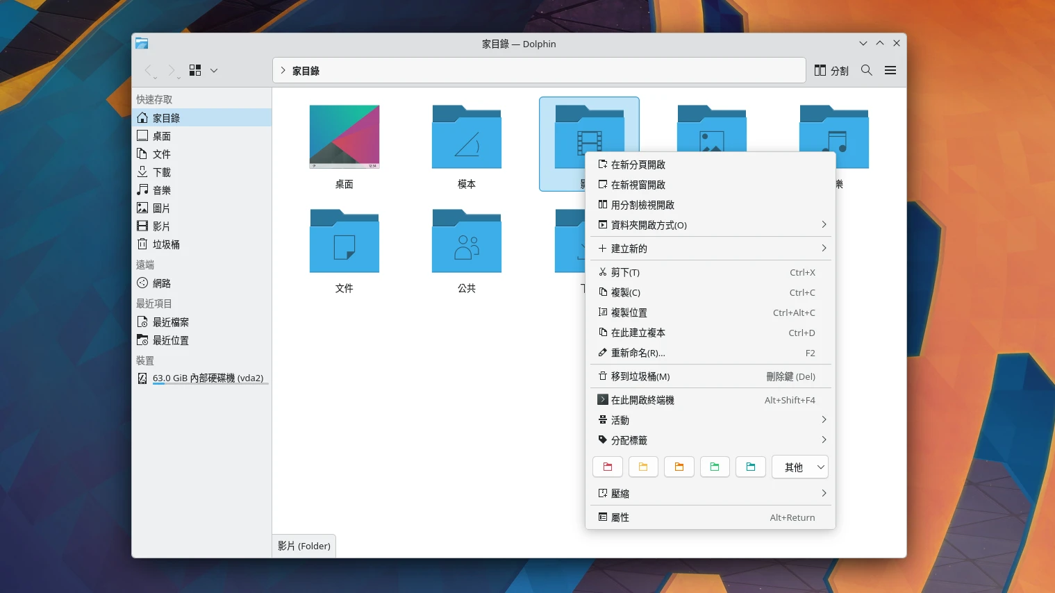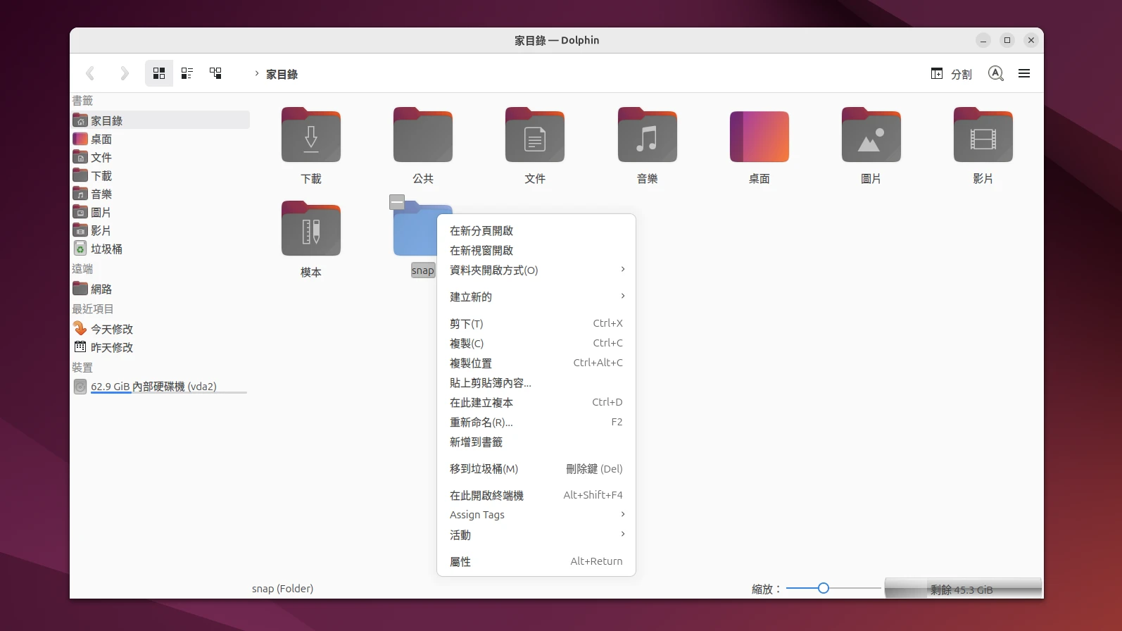 如下圖,在GNOME桌面安裝Dolphin檔案管理器,圖示變得很醜!