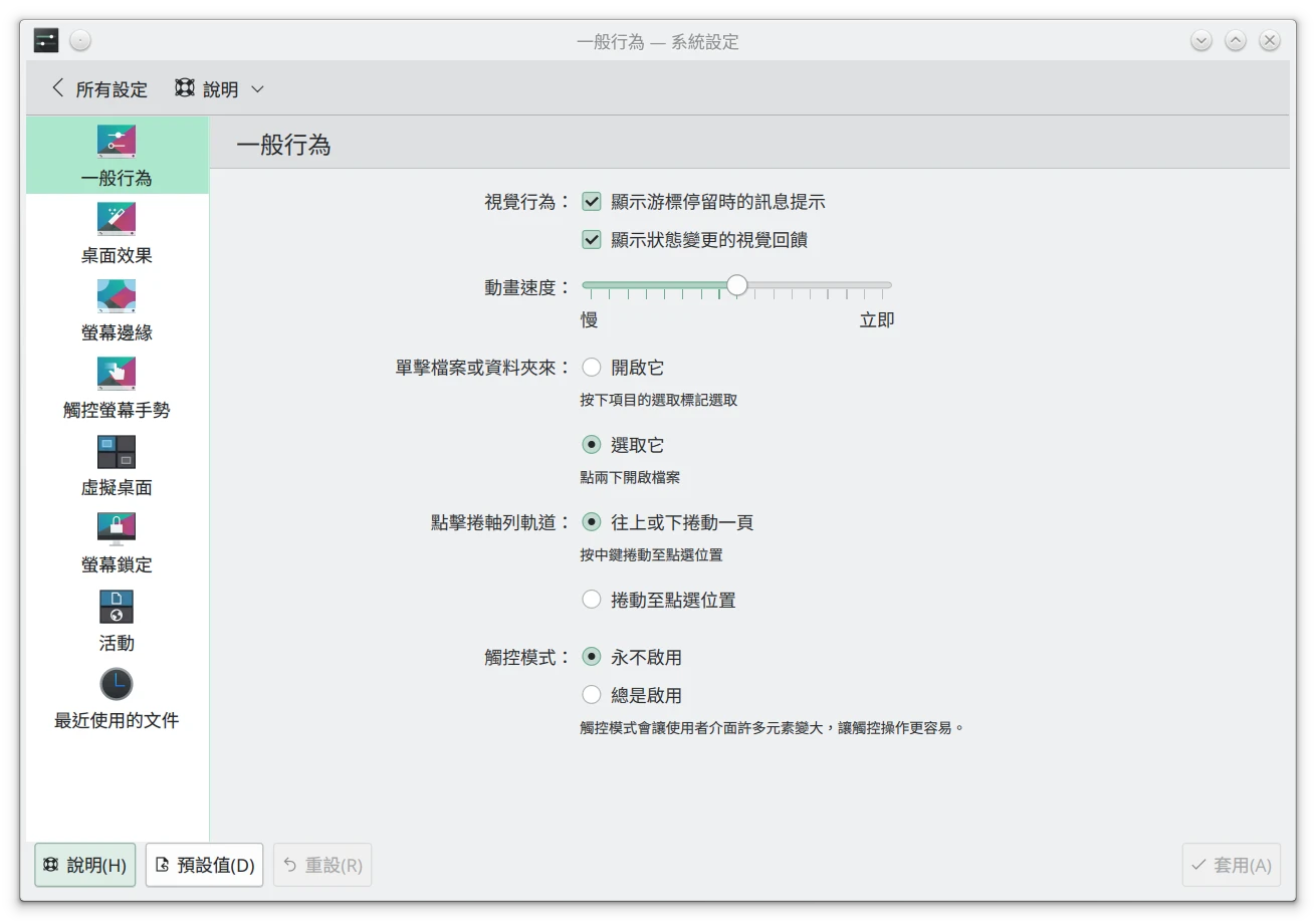 此外,在測試了好幾次後,我個人還是覺得GNOME很難用,XFCE太簡陋,Cinnamon預設很醜,所以我到現在只認KDE Plasma為Linux最好桌面。有人跟我抱怨它長得像玩具?不穩定?能調的設定太多使其變得繁雜?我認為這都不是問題,KDE的自由度還是比較高的;穩定度近年來也改善許多;KDE將命令行的操作整合到圖形系統設定不是雞肋,而是讓系統更好用的設定。
