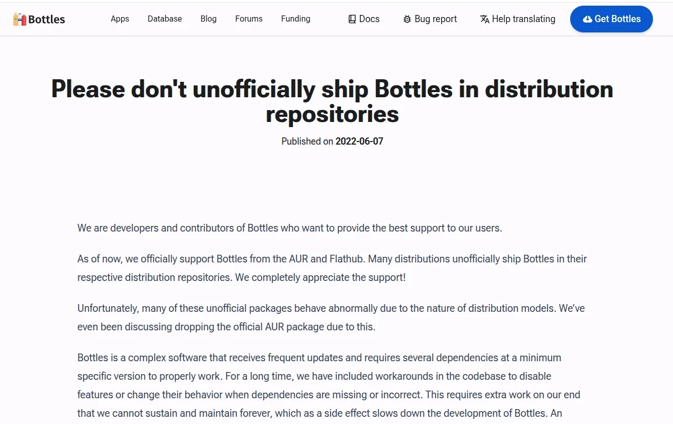 我想,除非開發者是像Wine Bottles這類熱衷推廣Flatpak的人士,否則就不要強求Flatpak能取代原生套件。