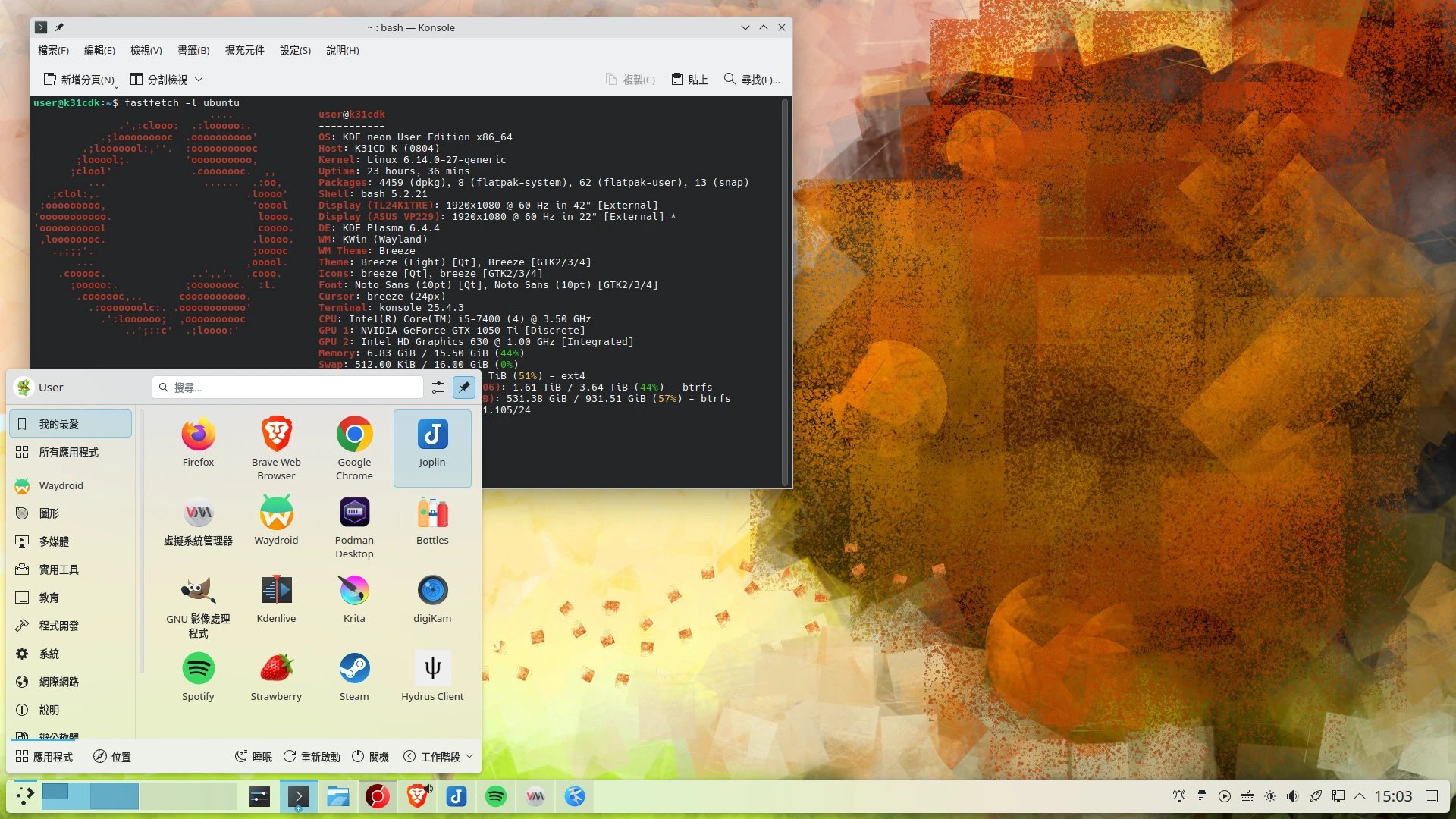 現在使用的系統是Ubuntu與KDE Neon的混合體(好孩子不要學)嗯,我當初是用Ubuntu 22.04 ISO裝的,方便啟用LVM。安全的度過了大版本升級到24.04。然後想要KDE桌面,就手動安裝kubuntu-desktop,刪除GNOME桌面。之後又覺得更新太慢,Kubuntu 24.04還在Plasma 5.27…懶得用KDE Neon的ISO重裝系統。所以,手動在APT加了KDE Neon套件庫,以便取得最新的Plasma 6。