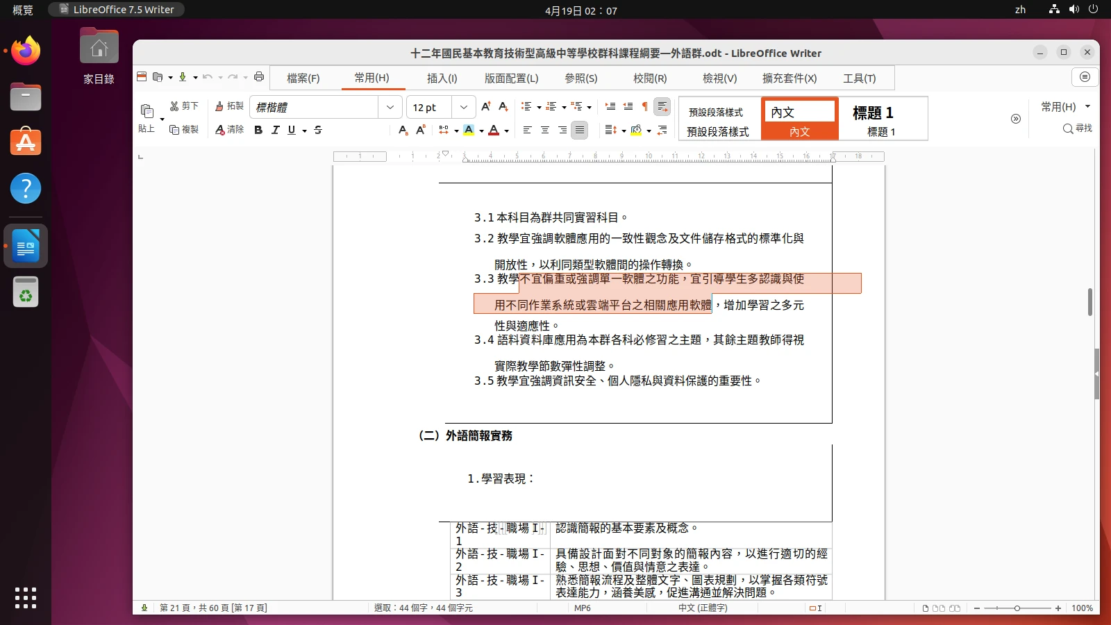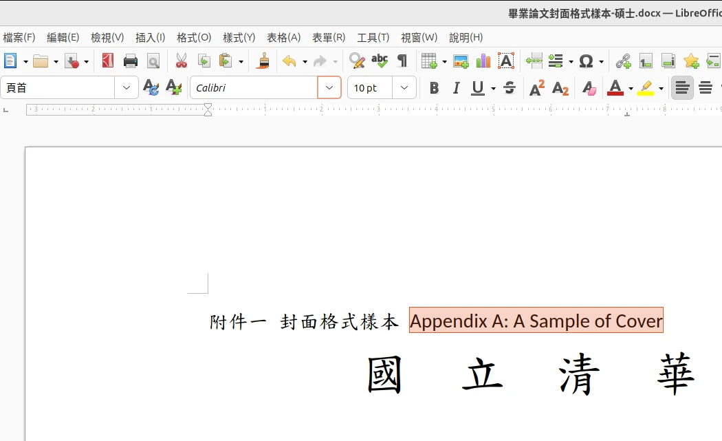 如何知道系統缺少某一個字型?選取一段文字,如果LibreOffice的字型變成斜體字,代表該字型找不到,需要手動安裝。