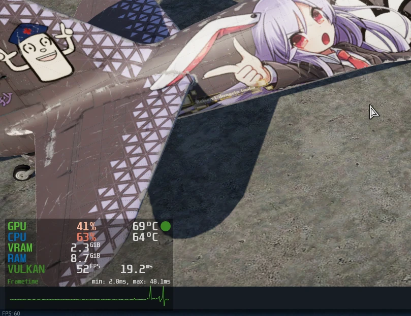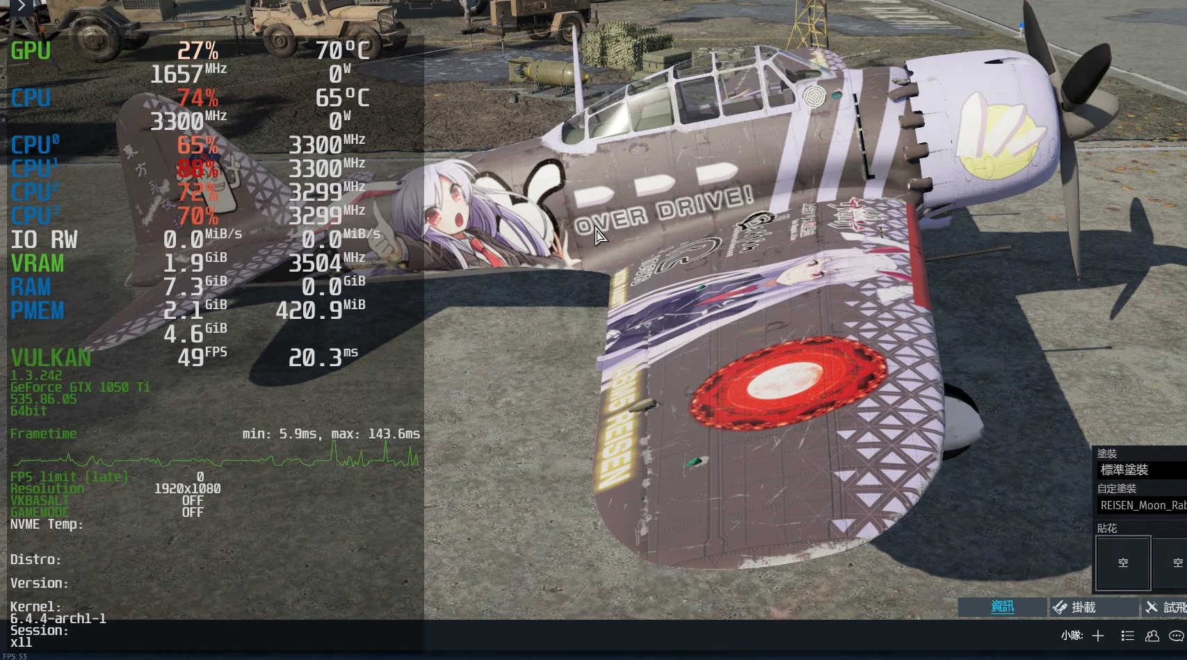 如下圖,MangoHud顯示於遊戲螢幕左下角。