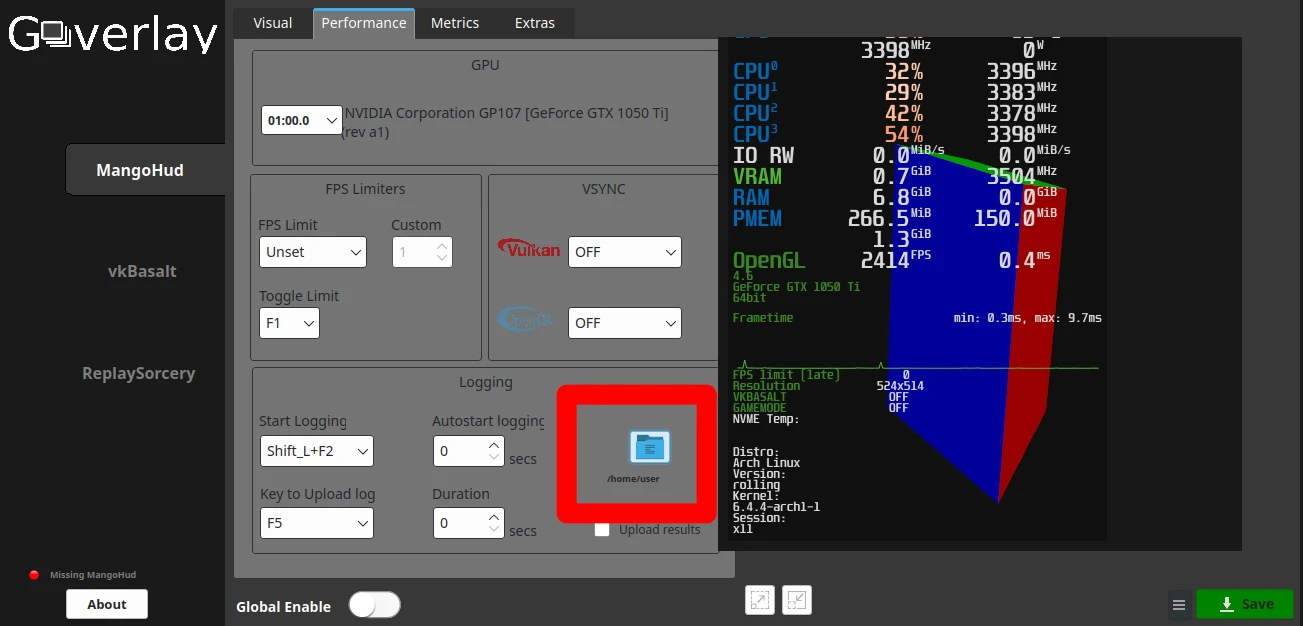 Goverlay讀取的是MangoHud預設的設定檔目錄