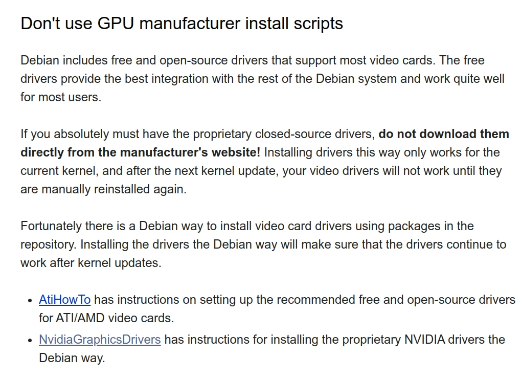 如果你讀過Debian Wiki,他們一定會跟你說,不要任意執行廠商的安裝器,用我們打包好的!免得搞壞系統!