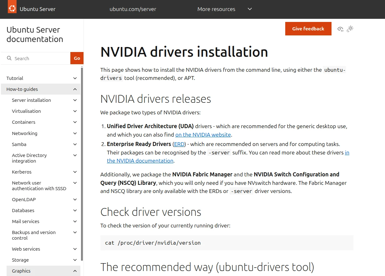 通常,你不需要到Nvidia官網下載安裝器,而是應該透過Linux發行版的套件管理器來安裝Nvidia驅動,這樣日後才能追蹤變更。依照Ubuntu的打包方法,Nvidia閉源驅動除了一般的版本之外,還有提供headless版本,這是給伺服器專用的版本,表示不需要畫面輸出的部份。