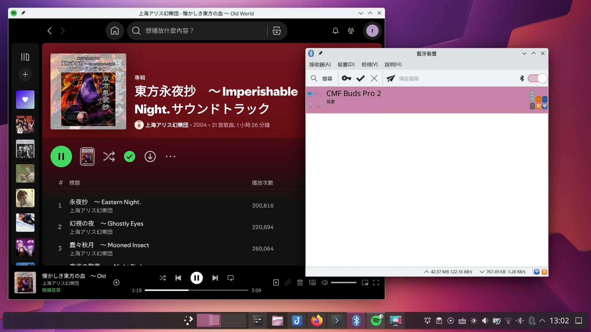 sudo apt install blueman從Blueman-GTK觀察藍牙耳機的位元率使用狀況。這裡上傳顯示的速度需要換算一下,依照LDAC提供的三檔品質來看,124 KB/s = 990 kbps。82.5 KB/s = 660 kbps。41.25 KB/s = 330 kbps。