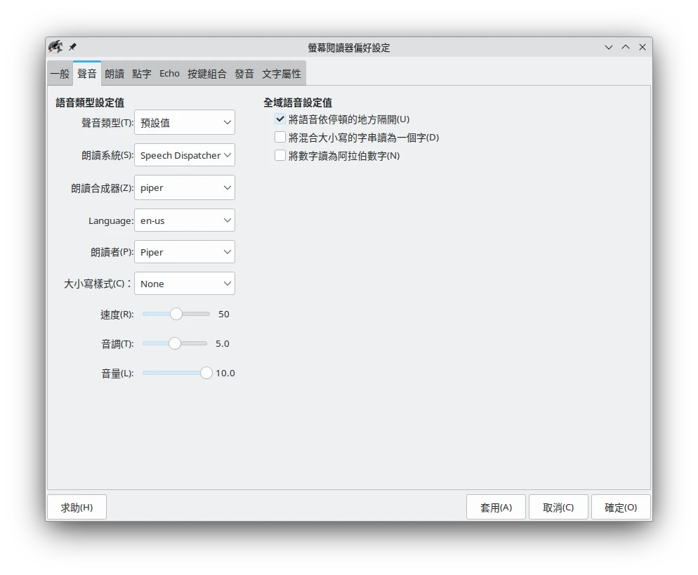 Chromium沒辦法使用Speech Dispatcher,只能用擴充套件安裝Piper。