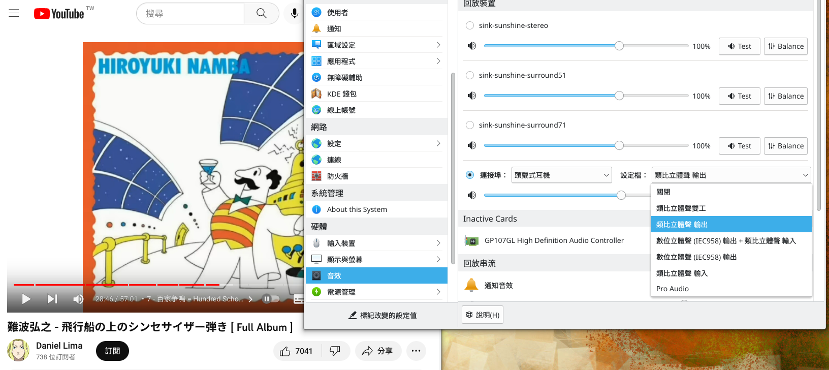 遠端桌電的聲音也會一併傳輸過來,聽不到的話試著調整遠端主機的PulseAudio輸出模式。