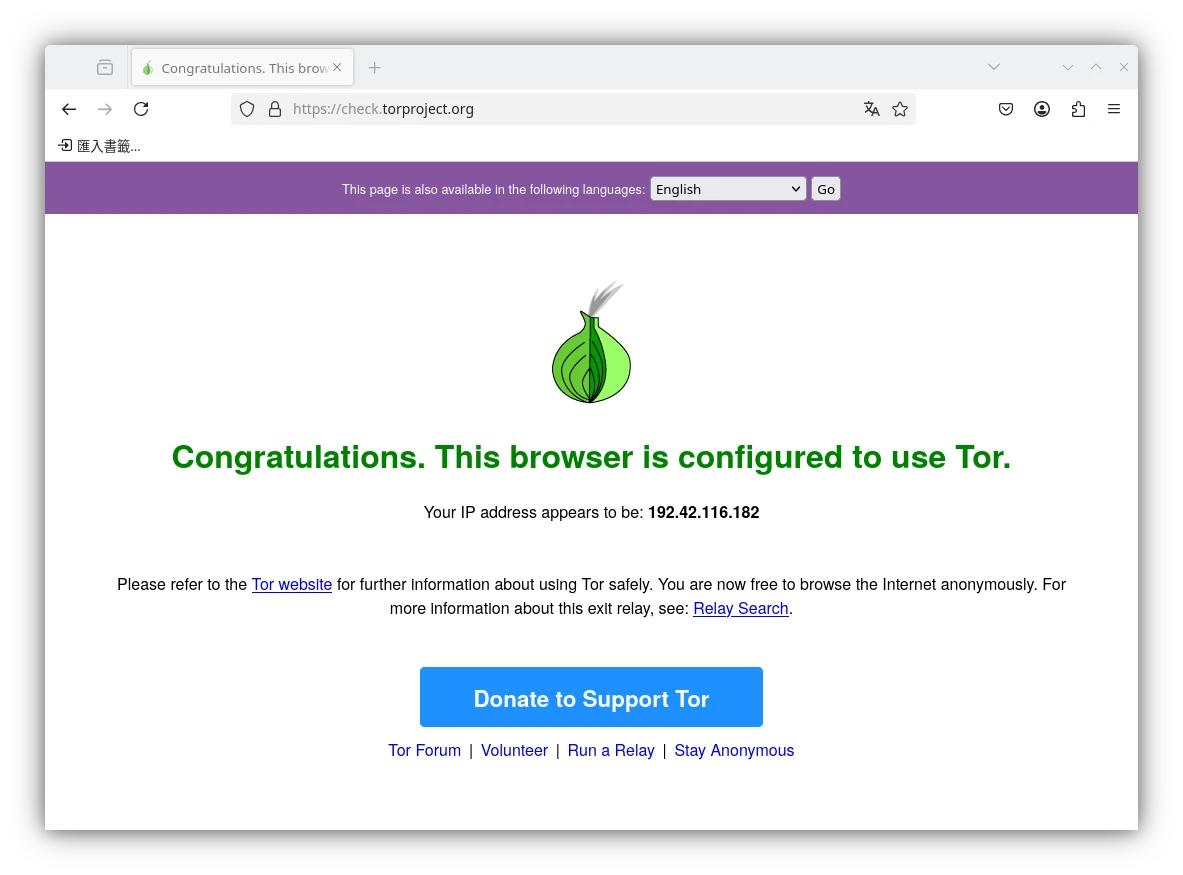 - 連線到Tor Project官網,確認是否連上Tor網路: