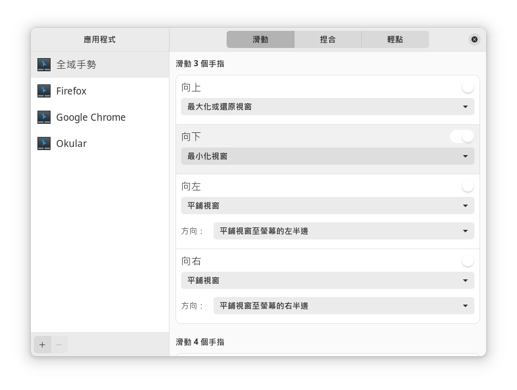這樣勉強可以達到Wayland工作階段的手勢效果。