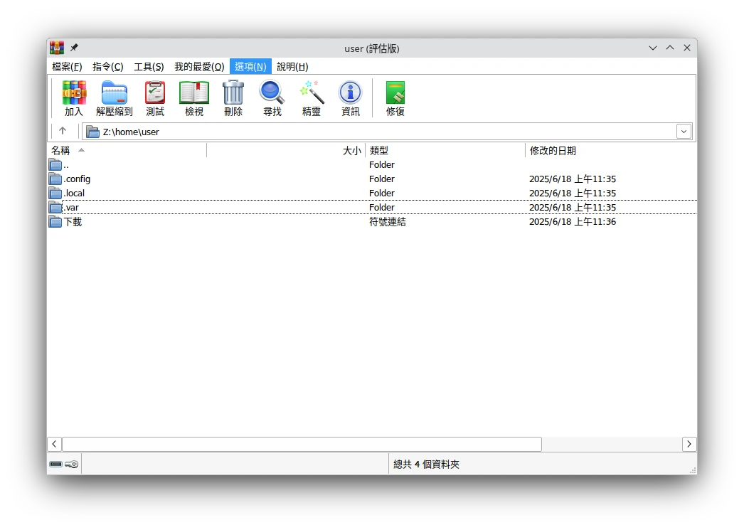 Linux桌面環境的檔案管理員多半會附屬解壓縮軟體,不過我覺得功能沒有上面的那麼多樣。