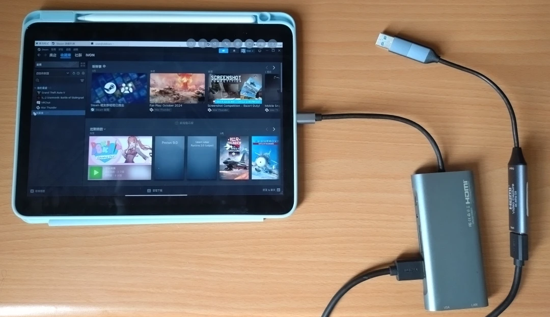 以iPad為例,插上Type-C擴充座,再將HDMI線插上,並將HDMI線連接到擷取卡,如下圖: