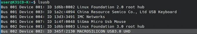 lsusb指令可以看到擷取卡的硬體資訊