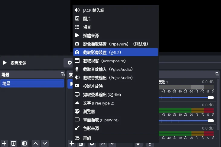 開啟OBS Studio,新增擷取影像裝置(V4L2)。