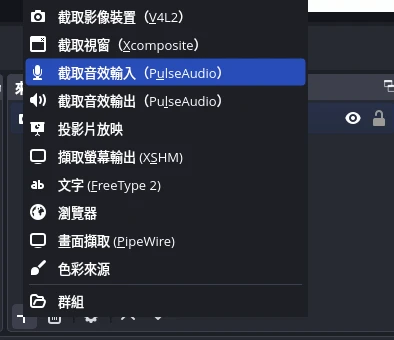 至於擷取卡音效部分,點選新增擷取音效輸入(PulseAudio)