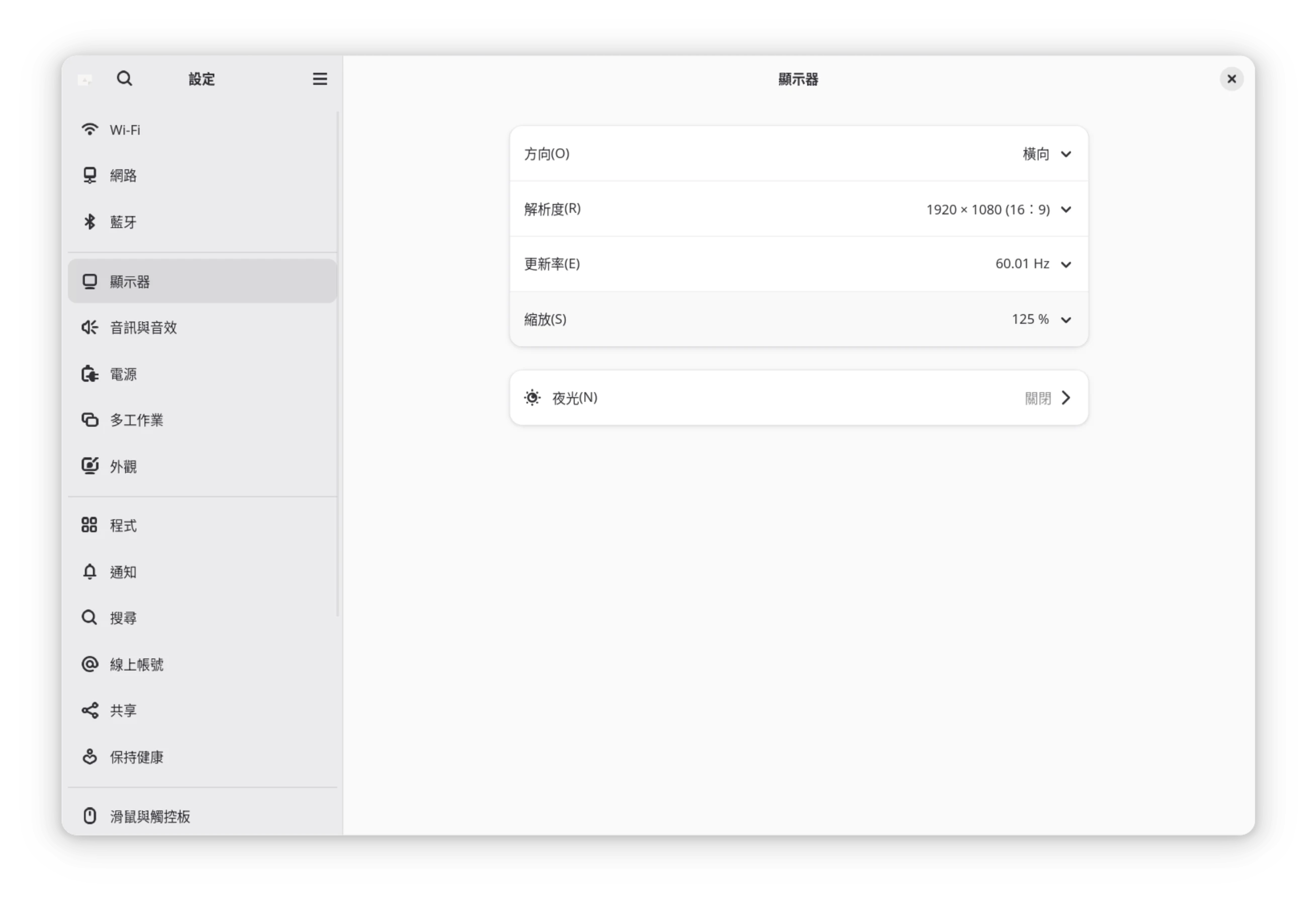 GNOME 48以上版本提供Wayland非整數縮放,在GNOME的系統設定 → 顯示器開啟。