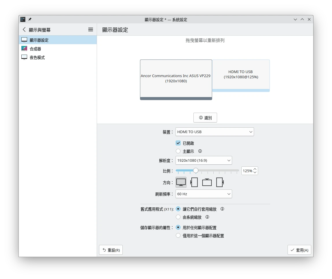 例如,KDE做如下設定之後,視窗移動到另外一個螢幕後,就會自動依照那個螢幕的縮放設定放大。