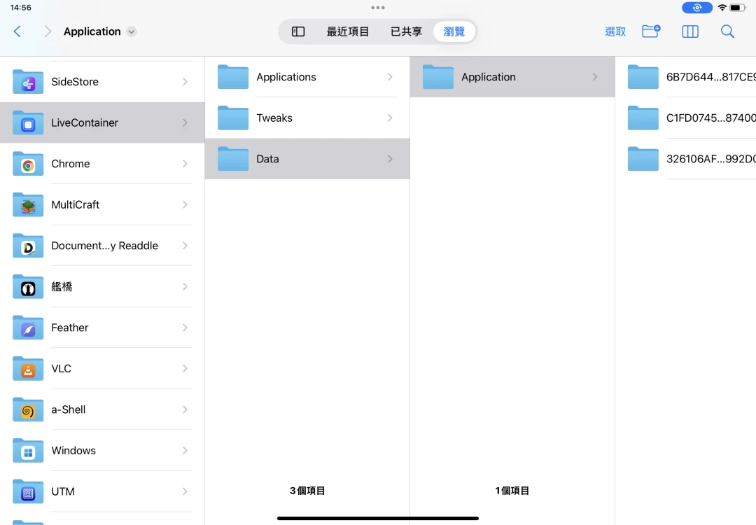 開啟iOS檔案APP → 我的iPhone/iPad → LiveContainer → Data → Application,可以看到各個APP的資料。