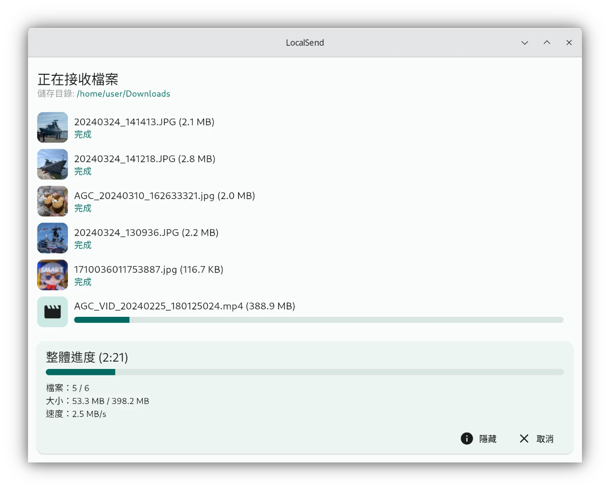 LocalSend是用Flutter寫的無線傳檔軟體,支援Linux、Windows、macOS、Android、iOS系統。