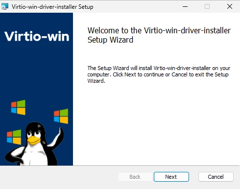 virtio-win-gt-x64.msi,點選安裝Virt-IO驅動。