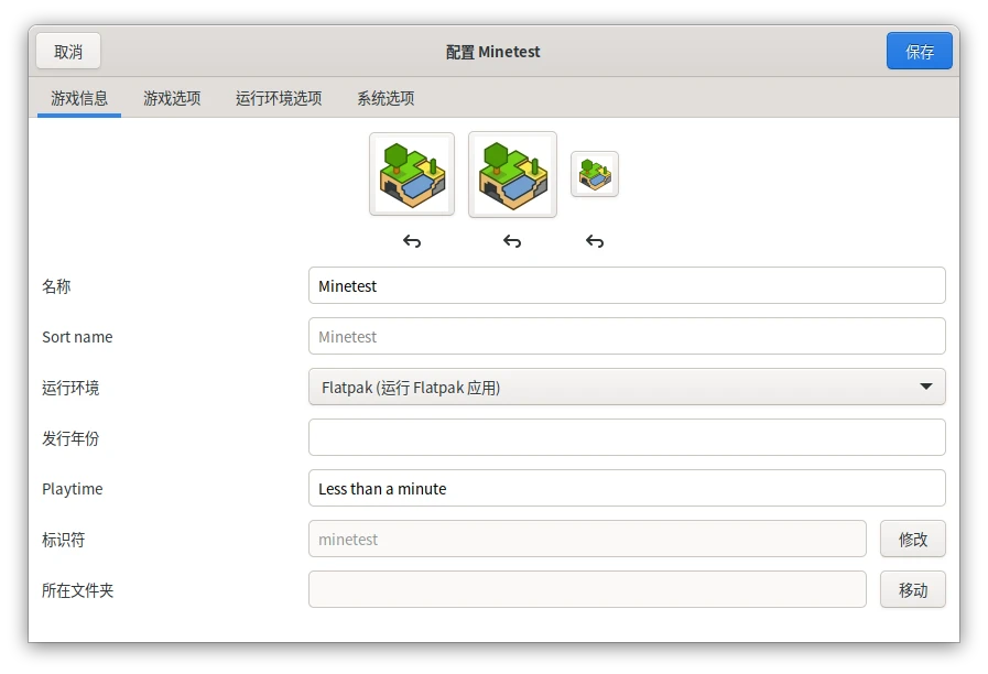 2. 遊戲選項的應用ID輸入org.luanti.luanti,如此一來便完成設定。