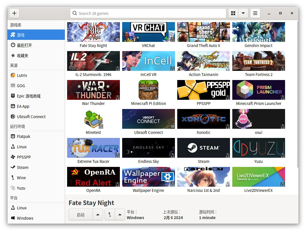 不論你的遊戲是Windows遊戲、Linux原生,還是模擬器,你都可以把它加入到Lutris的啟動界面,統一管理。
