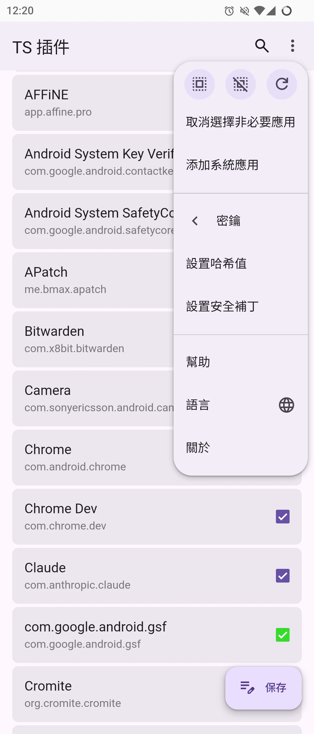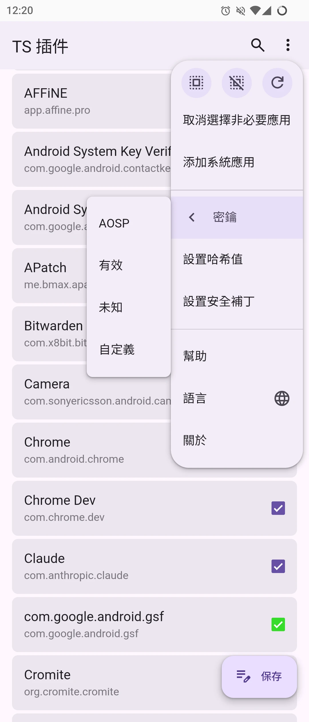 在模組管理界面,開啟Tricky Store的網頁界面,點右上角,全選APP,按下保存。