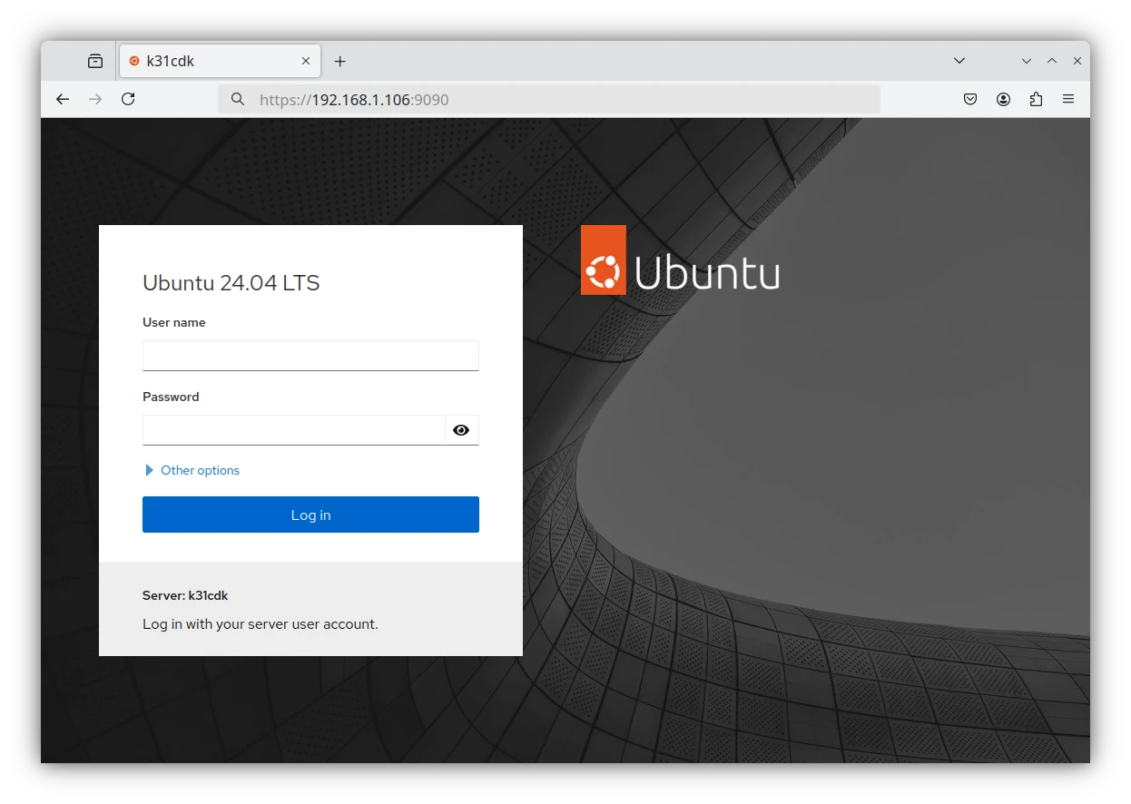 - 然後就可以用本機瀏覽器或另一台電腦開啟Cockpit的後台界面了。網址為