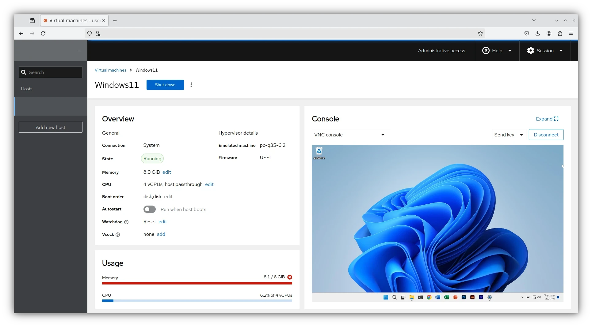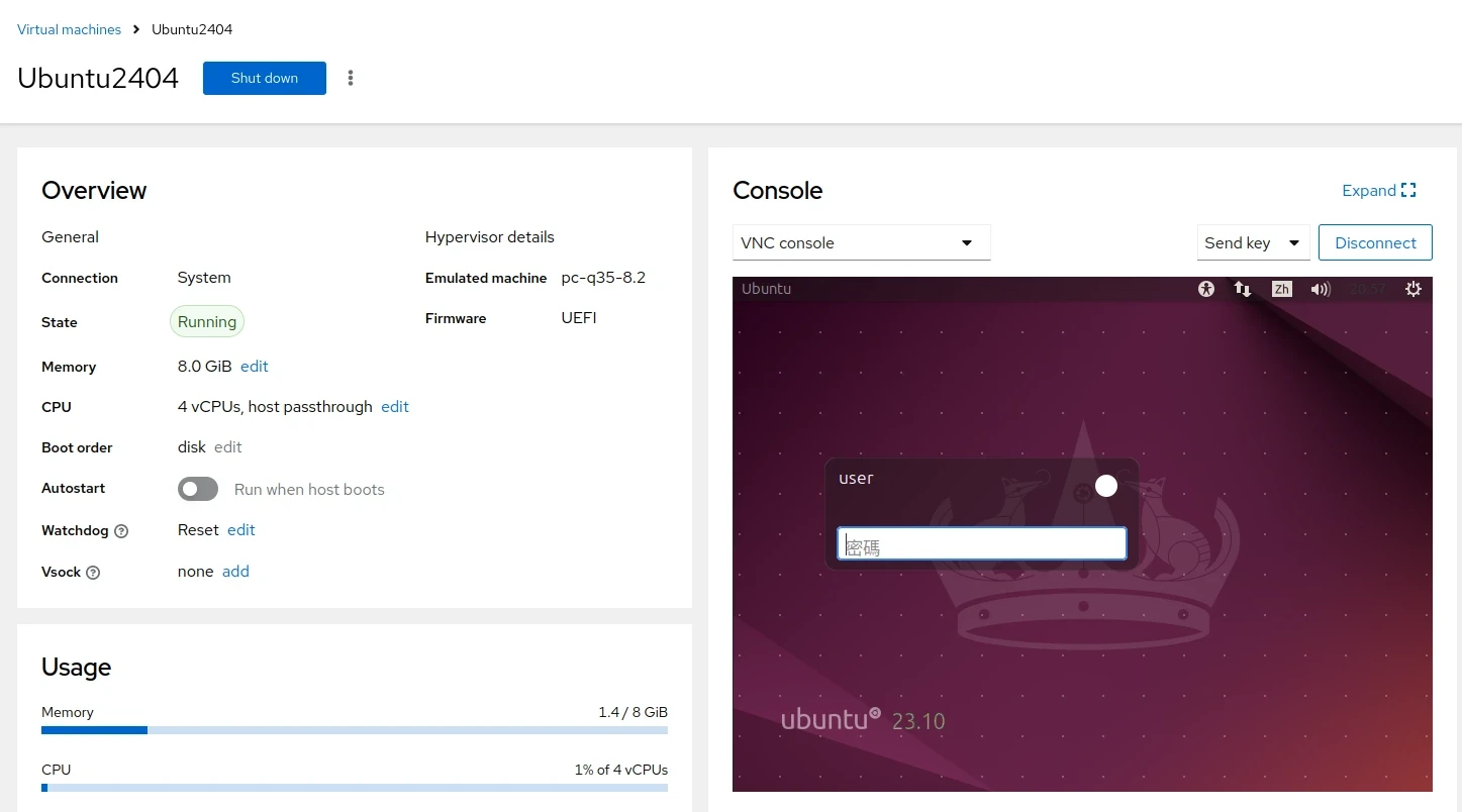 如果虛擬機有設定VNC服務,開機後應可從Cockpit網頁直接存取桌面。