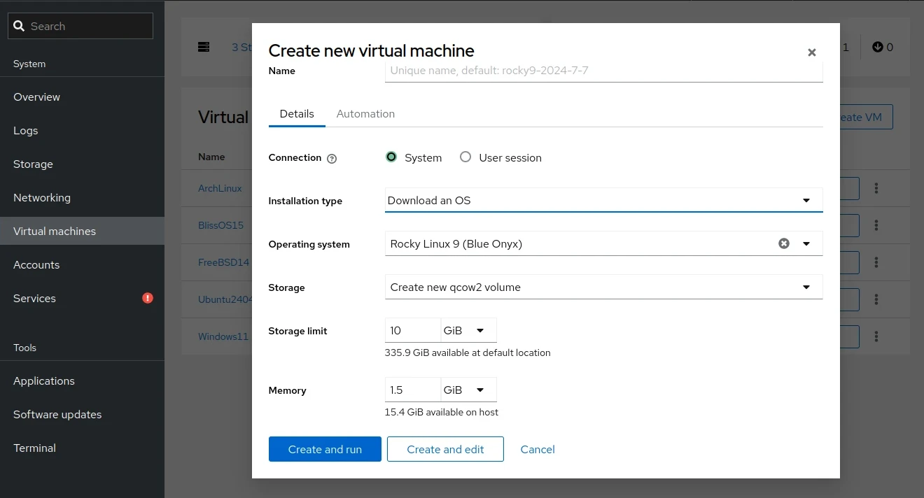 Managing remote QEMU/KVM virtual machines with Cockpit web interface.
