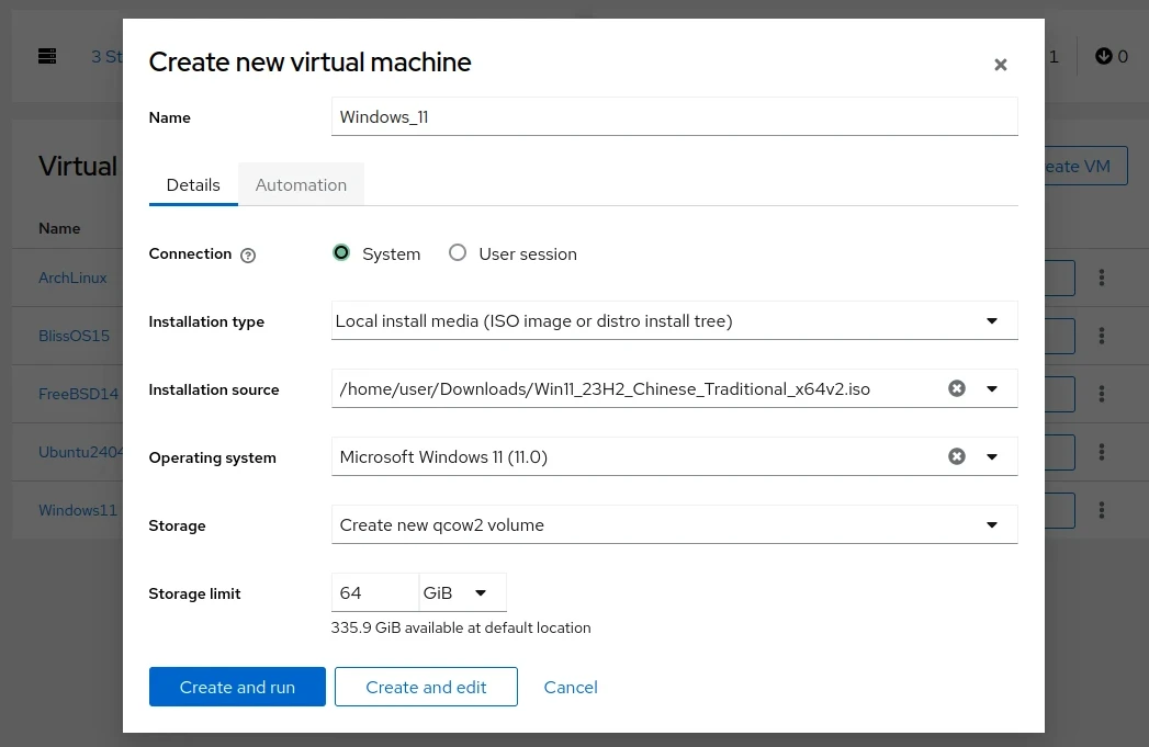 再參考Windows 11 QEMU/KVM安裝方法新增TPM硬體,開始安裝系統。
