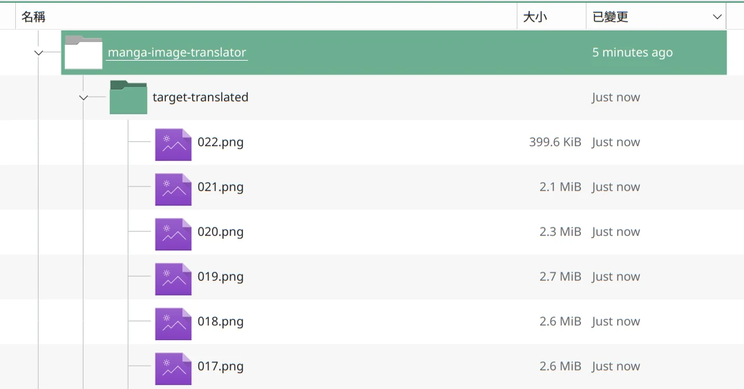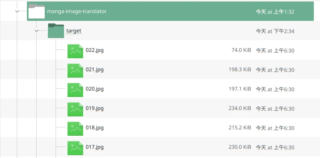manga-image-translator下新增target目錄,將要翻譯的原始圖片放進去,可以一次翻譯多張圖片。這裡我放了22張圖片。
